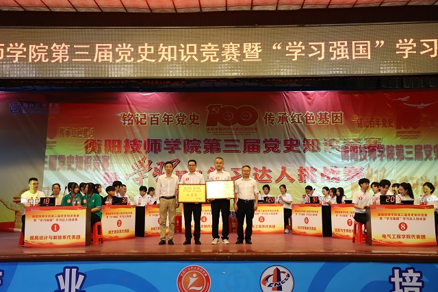 本網訊 為持續深化黨史學習教育,激發學生對黨史知識學習的熱情,營造學習黨史的濃厚氛圍,衡陽技師學院在全院范圍內開展了“銘記百年黨史,傳承紅色基因”為主題的黨史知識競賽暨“學習強國”學習達人挑戰賽。5月26日下午,黨史知識競賽總決賽在衡陽技師學院大禮堂舉行。