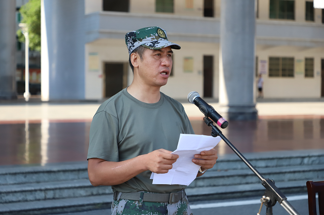 大會在莊重的國歌聲中拉開帷幕。院長邱家長代表學院對全體新生表示熱烈歡迎,對大力支持學校軍訓工作的全體教官們表示衷心感謝。他指出,同學們生逢盛世,作為社會主義的建設者和接班人,理應自覺踐行《中華人民共和國國防法》。他要求,同學們要珍惜此次軍事教育和訓練的機會,修好軍訓必修課,錘煉聽黨指揮、勇于拼搏的優良作風,塑造團隊精神,磨礪勇毅品質,練就強健體魄。