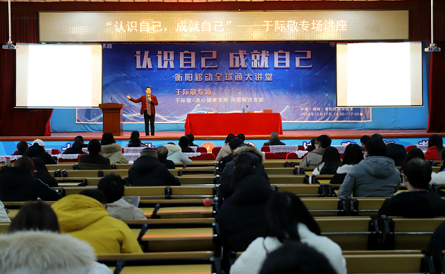 本網訊 12月17日下午,學院在大禮堂舉辦“全球通大講堂”,特邀身心健康專家、問題解決專家于際敬開展“認識自己,成就自己”專題講座。黨委書記何東球主持講座,院長邱家才、黨委班子成員、各部門負責人、黨總支書記及400余名師生代表一起聆聽講座。
