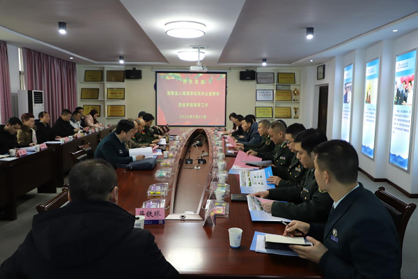 本網訊 2月23日上午,湖南省征兵辦公室主任、省軍區動員局局長李道銀,衡陽市委常委、警備區司令員耿保民聯合工作組來我院調研2022年春季征兵工作,并參觀了學院公共實訓基地、智能制造、信息網絡布線等競賽基地,了解學院辦學環境,專業特色和校園文化等,學院黨委副書記、院長邱家才出席會議。