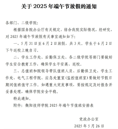 關于2025年端午節放假的通知