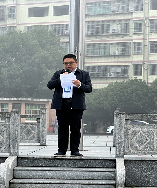 隨后由鄉村振興學院黨總支書記黃海贇在國旗下講話,其主題為:“關注安全、警鐘長鳴”!意旨在進一步引導師生重視安全意識、強化責任擔當,為我校打造平安校園注入強勁動力。晨光熹微,全體師生已陣列嚴整,屏息凝神。當雷霆萬鈞的國歌劃破長空,五星紅旗迎風展開,冉冉升起。一道道目光緊隨國旗,五星紅旗與天際的赤色交相輝映,無聲訴說著對職業教育信仰的錚錚誓言與無悔擔當。