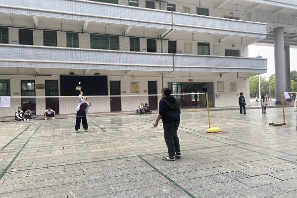 次比賽地點安排在第一教學樓天井內,活動開始前,各參賽選手信心滿滿地奔赴比賽場地。比賽以組別(男單、女單、女雙)為單位,采取三局兩勝制。比賽中,各位參賽選手全身心投入,你來我往,發揮所長,經過一上午的比拼,大家都打得汗流浹背,直呼過癮,使得本次比賽看點十足,振奮人心。