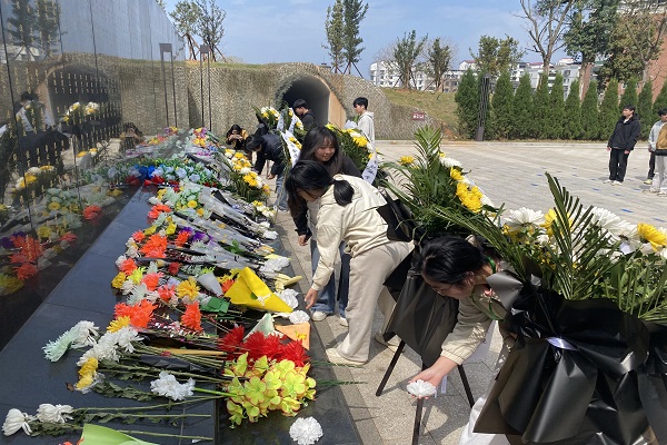 全體人員依次手持白花輕輕敬獻,將一朵朵白花輕輕放在烈士英名石雕的基座前,以最樸素的方式,表達對革命先烈的緬懷之情。