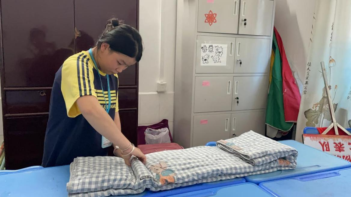 在輕松有趣的氛圍中,“情緒盲盒”“色彩心情,隨心表達”等活動同樣精彩紛呈。36名同學抽取情緒卡片,分享內心故事,在共鳴中卸下心理包袱;參與者用彩紙拼貼心情,將抽象情緒轉化為藝術創作,實現心靈的溫柔療愈。擊鼓傳花、你劃我猜等互動游戲,讓歡聲笑語驅散焦慮;狼人殺的燒腦推理,鍛煉思維的同時提升心理韌性;羽毛球賽場上的揮汗如雨,則讓壓力隨飛揚的球拍煙消云散。疊被子比賽參與人數最多,方寸之間,疊出心的秩序,參與者專注于疊被子實踐,內務整理這方面也是做到了手拿把掐,技術一流。
