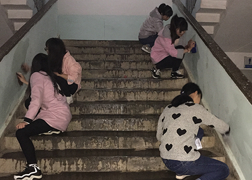 志愿者清潔樓梯過道