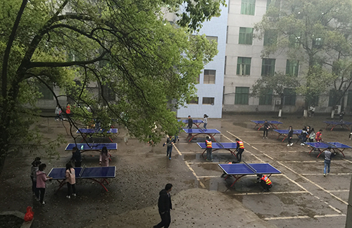 志愿者們清潔乒乓球臺