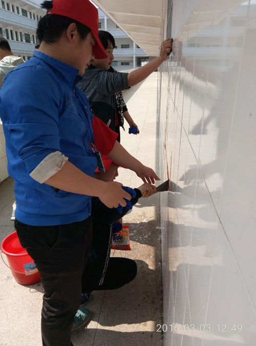 3月18日,模具系志愿者們在模具樓前集合,開展學雷鋒活動。同學們對模具樓樓道、乒乓球臺進行亮化,對洗手間進行重新布置,粘貼了溫心提示。所過之處一片干凈整潔,所到之處洋溢著快樂與和諧,傳遞著正能量。本次活動同學們用實際行動踐行了雷鋒精神,同時也增強了同學們的環保意識,建立了良好的文明學生形象,發揚了中華傳統美德。(通訊員:模具系團總支 李艷)