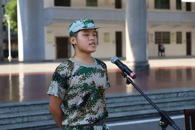承訓單位負責人宋三江代表軍訓教官鄭重承諾:以身作則,文明訓練。希望同學們在軍訓過程中服務命令,聽從指揮,刻苦訓練,磨煉意志品質。2021計軟技師班許良同學代表全體新生莊嚴承諾,將嚴肅認真,高標準、高質量完成本次軍訓任務。