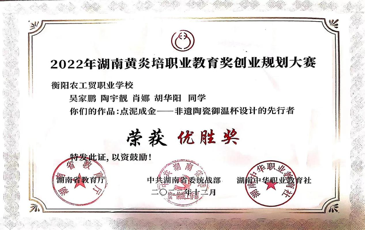 榮獲2022年湖南黃炎培職業教育獎創業規劃大賽優勝獎