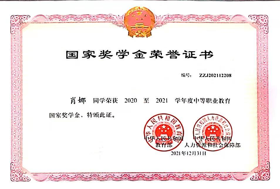 榮獲2020至2021學年度中等職業教育國家獎學金
